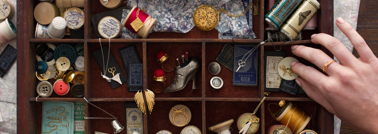 The new Alex Monroe collection is called The Haberdashery, featuring tiny pairs of scissors, a pin cushion ring and delicate string bows. Being a textile designer who specialised in ‘stitch’ (experimental hand and machine embroidery techniques), these pieces are right up my street! I’m hoping one might find its way into my stocking this Christmas……
